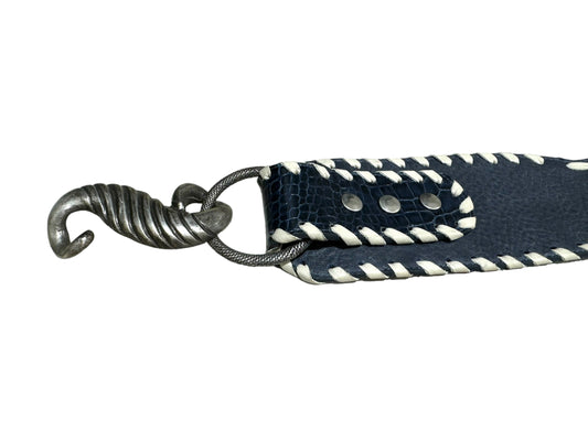 Navy Leather Belt w Silver Hardware