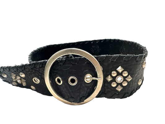 Black leather belt w grommets and Crystals