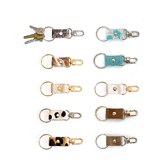 Key Chain In Leather, Hair on Hide: Gold