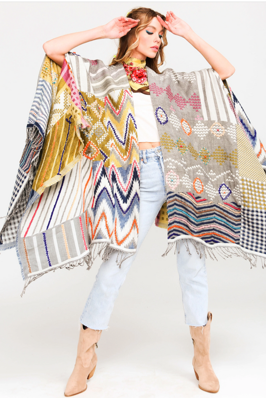 Aratta Snow White Poncho Hand Stitched Jaquard