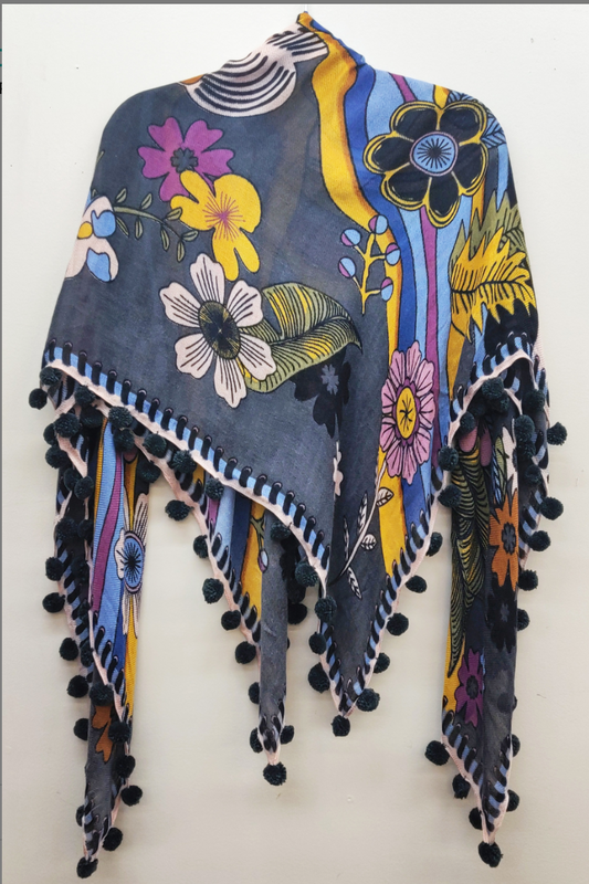Aratta Aurelia Hand Stitched Shawl- Gray/Yellow