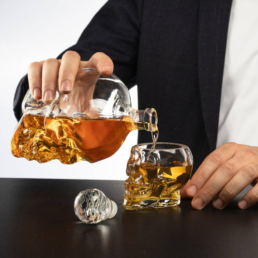 Skull Decanter Set & 4 Skeleton Shot Glasses