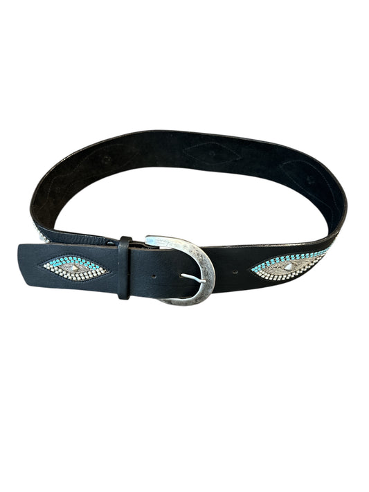 Brown Leather Belt Studded with Turquoise Distress