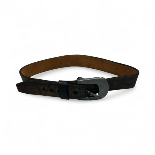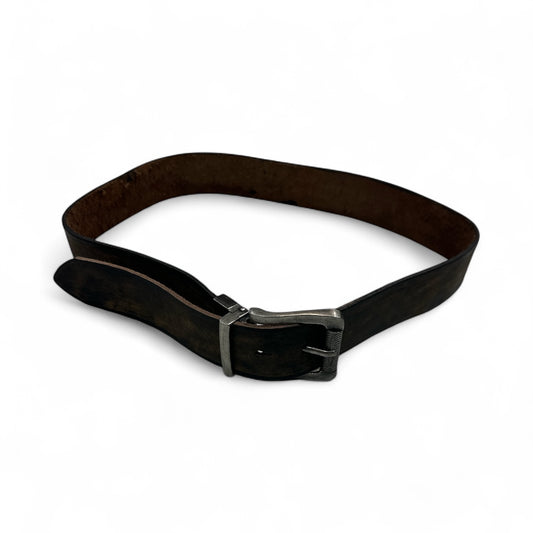 Dark Brown Distressed Leather Belt with Silver Buckle