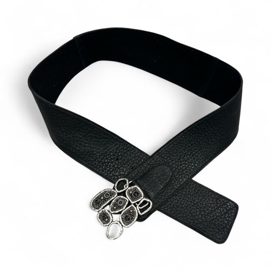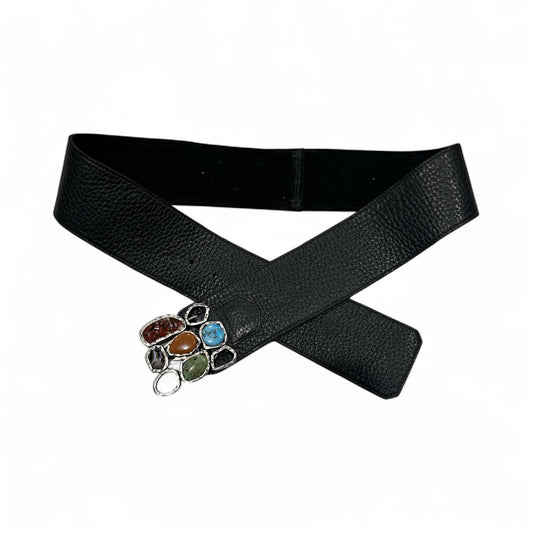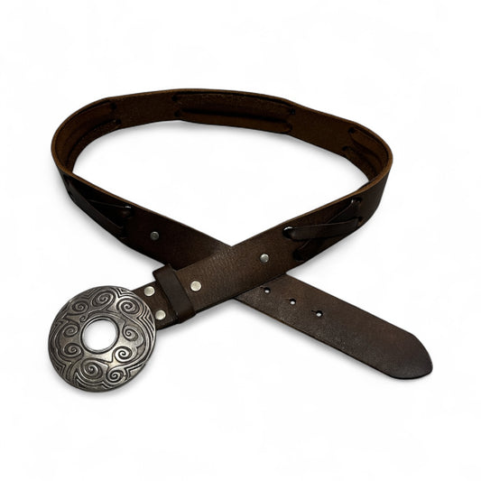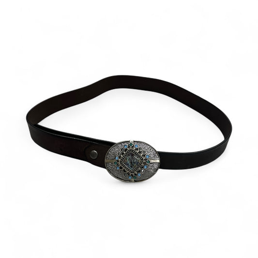 Dark Brown Leather Belt with Silver and Stone Buckle