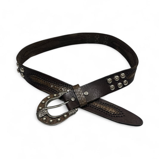 Brown Leather Belt with Turquoise Stud Ring Buckle