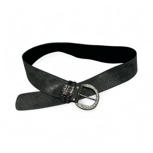 Mixed Metal Ring Belt - Brown Leather with Fur Connectors