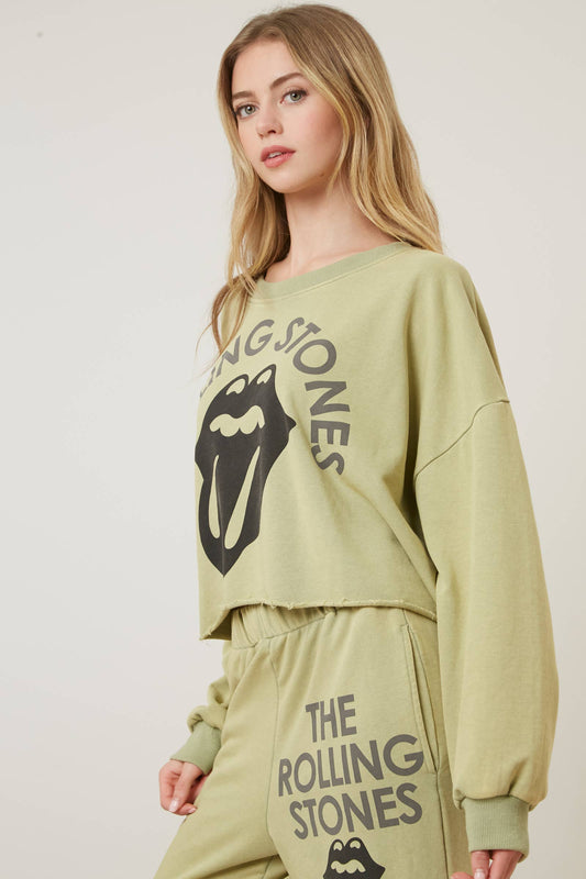 Rolling Stones Graphic Print Joggers: OLIVE / M