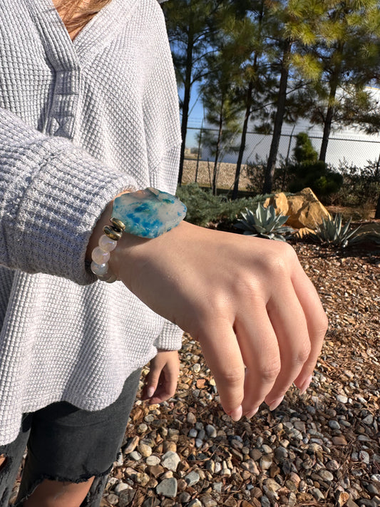 Aquamarine Bracelet // Gemstone Tooth Charm