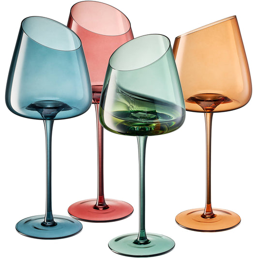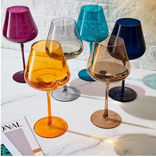 Set of 6-Jewel Toned Crystal Wine Glass Set