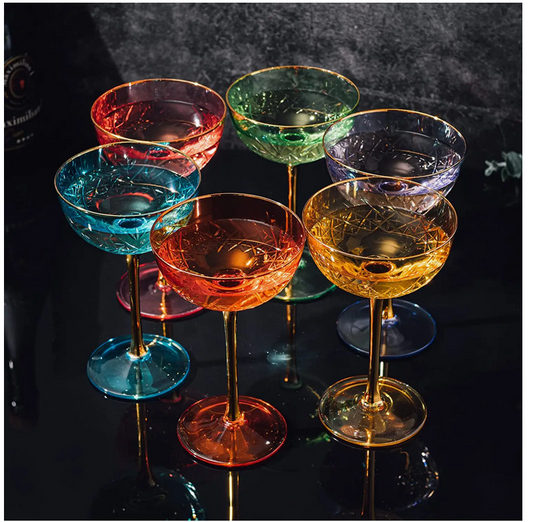 Set of 6 Colored Coup Art Deco Glasses
