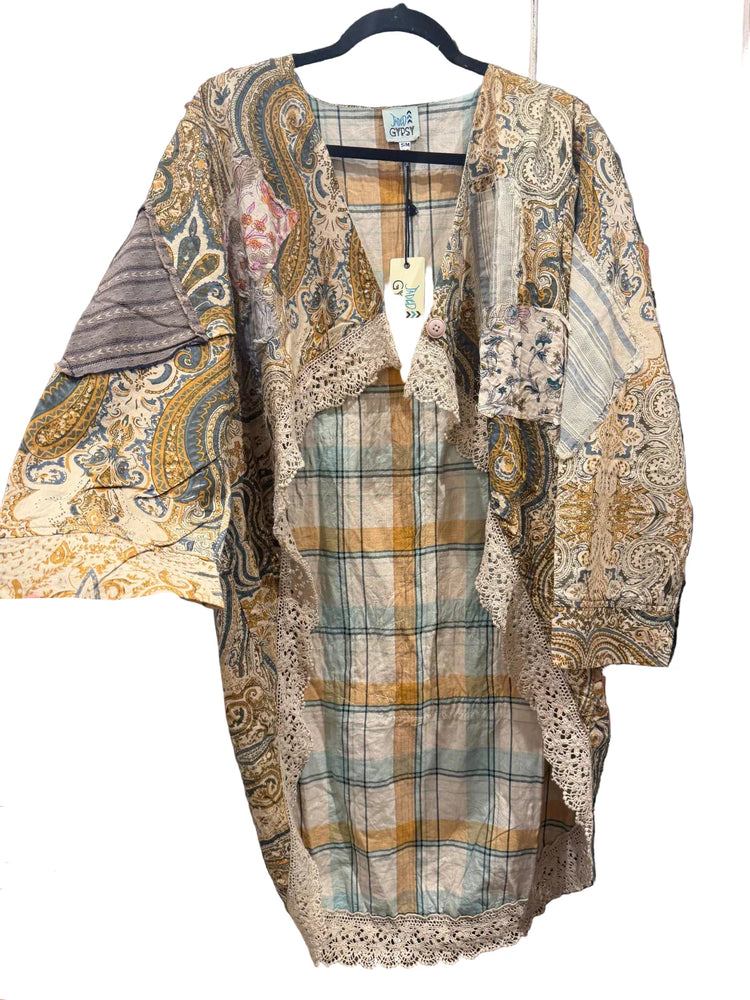 Jaded Gypsy Patchwork Skies Hooded Vest Duster