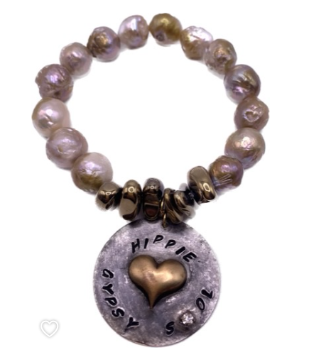 Large Oval Wire Rings with Grey Pearl Drop Earring