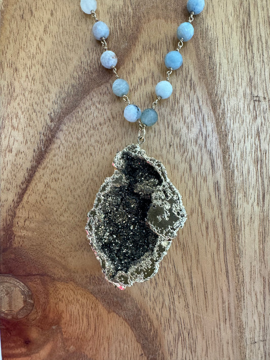 Hand Crafted Cuff ring with Gemstones: BLUE CHALCEDONY