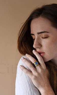 Hand Crafted Two Tone Cuff ring with Gemstones: Amazonite