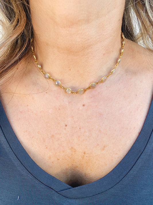 Rainbow Moonstone Bracelet // Gemstone Spike Charm