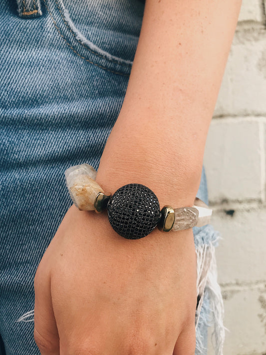 Rose Quartz Bracelet // Gemstone Spike Charm