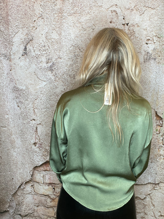 Sold outMock Neck Banded Puff Sleeve Blouse