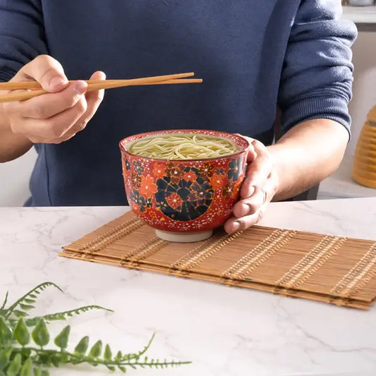 Floral Design 18oz 5.25"D Bowl With Chopsticks Set