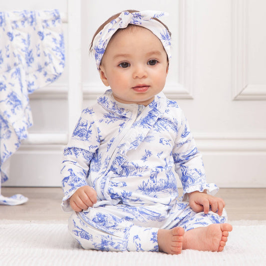 Baby Girl Toile de Jouy Bamboo Zipper Romper