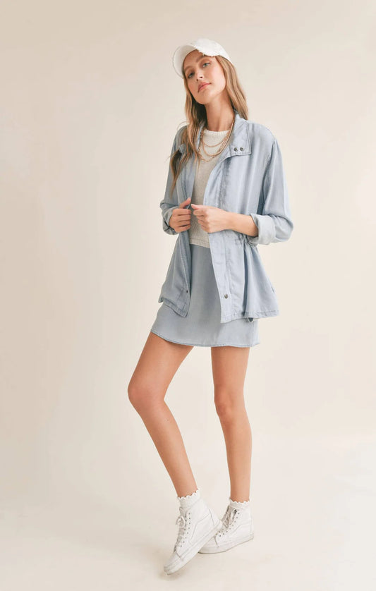 Oates Handquilted Medium Light Denim Multi Color Kangaroo Jacket