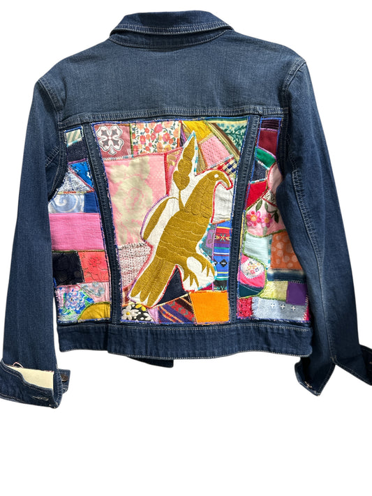 Oates Handquilted Dark Denim Multi Color Gold Bird Jacket
