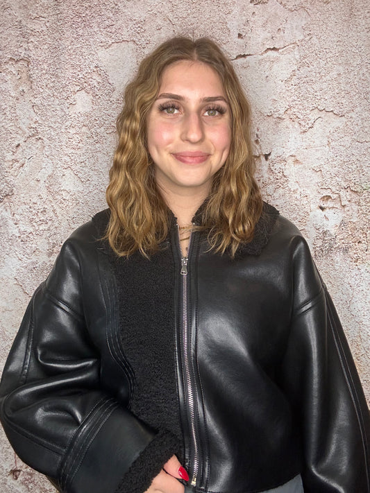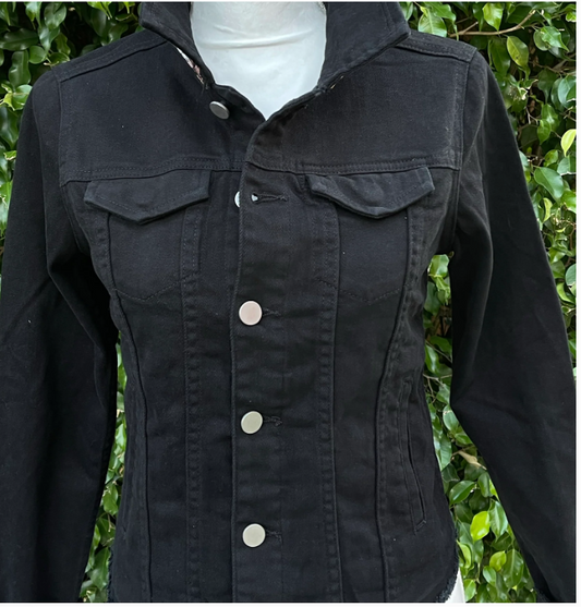 Oates Handquilted Large Dark Denim Multi Color Fuzzy Jacket
