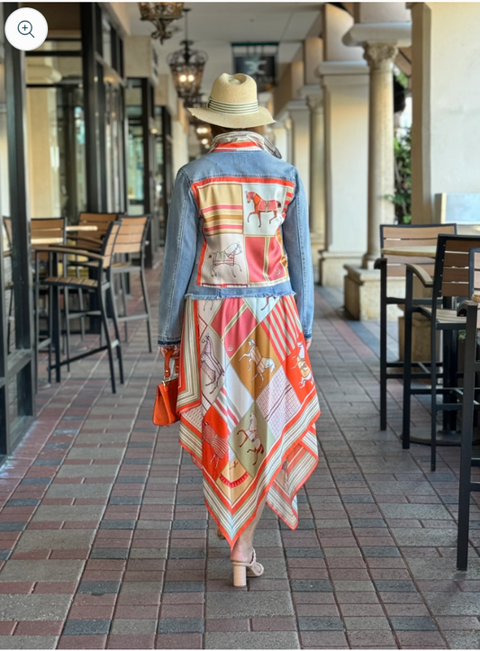Oates Handquilted Dark Denim Multi Color Gold Bird Jacket