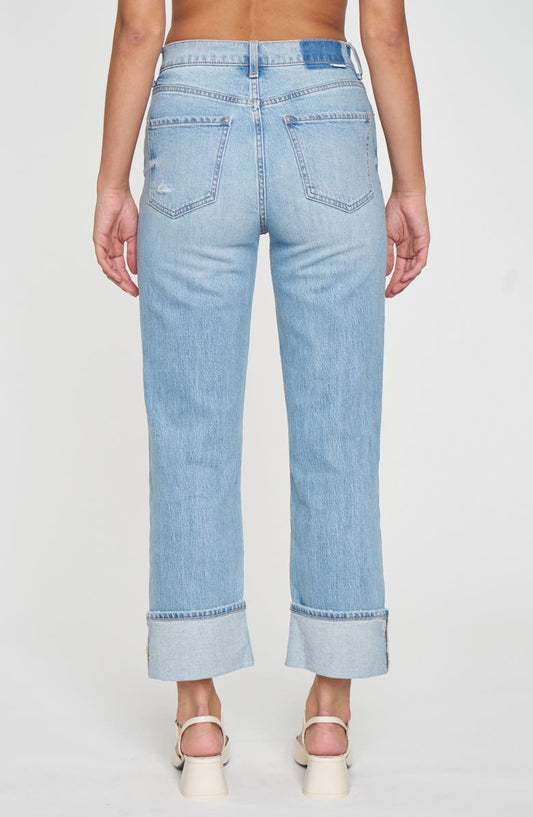 Sundaze High Waist Cuff Crop Straight Leg Jeans