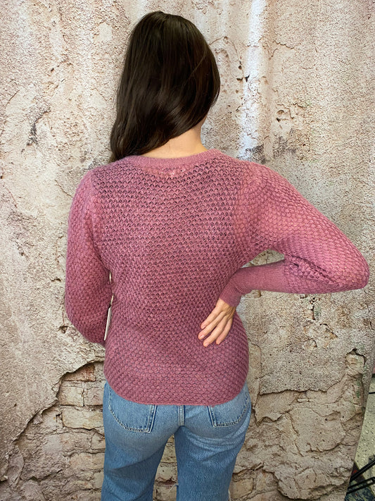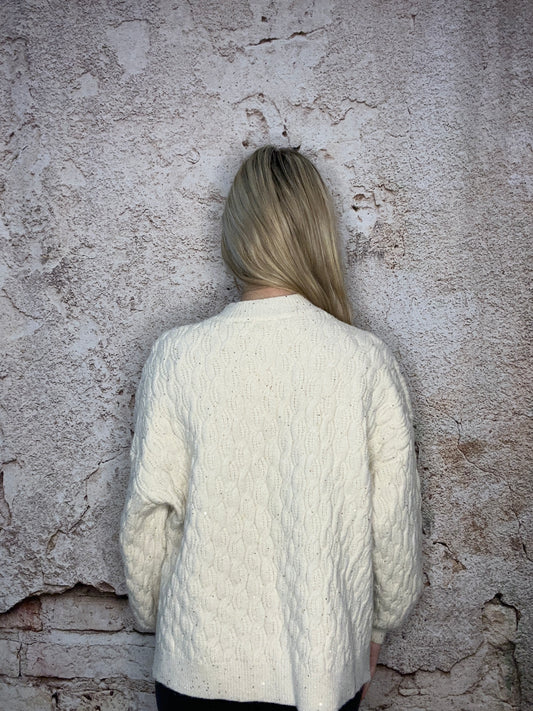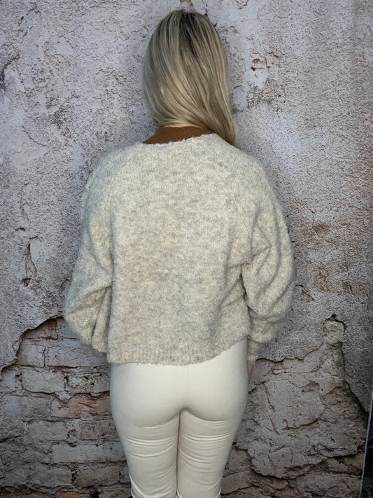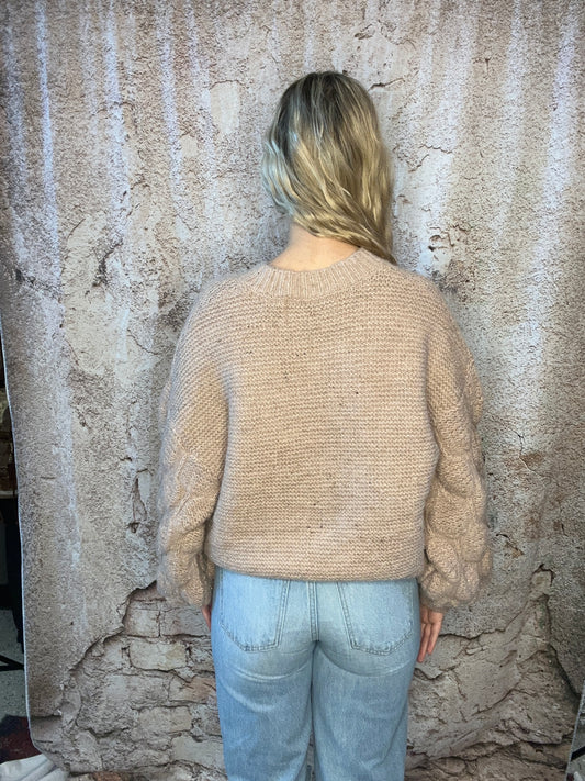 BEIGE KNIT SWEATER WITH PUFFED SLEEVES