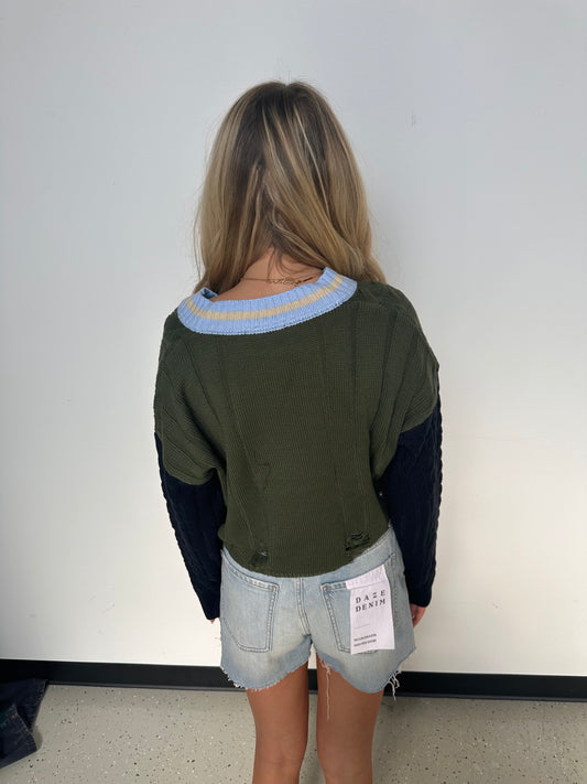 Multi Color Cropped V neck Sweater