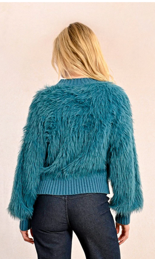 Fuzzy oversized button front cardigan