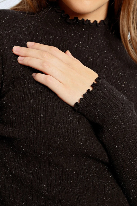 Pearl Cuff Mock Neck Sweater Top
