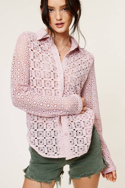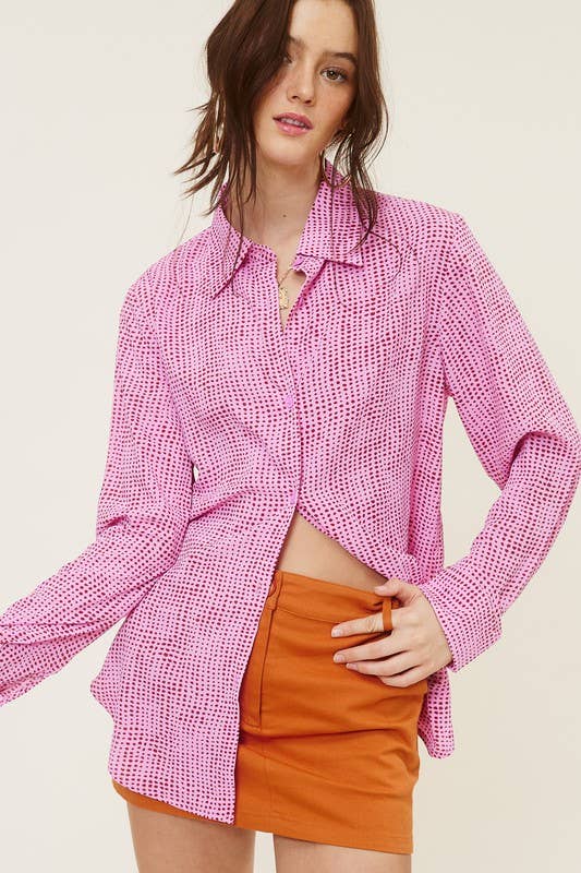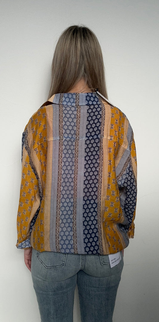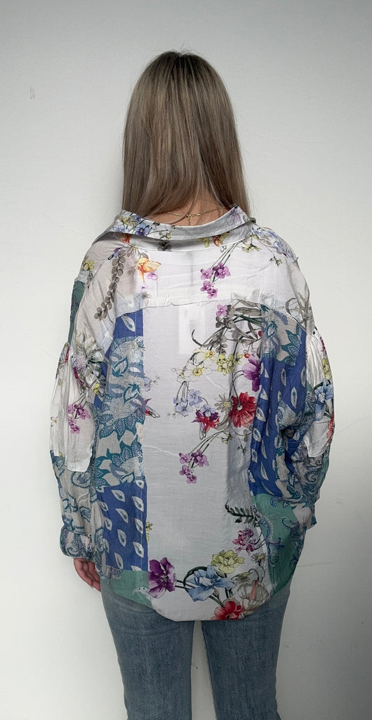 Oversize long sleeve print woven button down shirt: IVORY MULTI