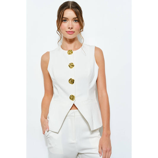 Luxe Gold Button Peplum Vest
