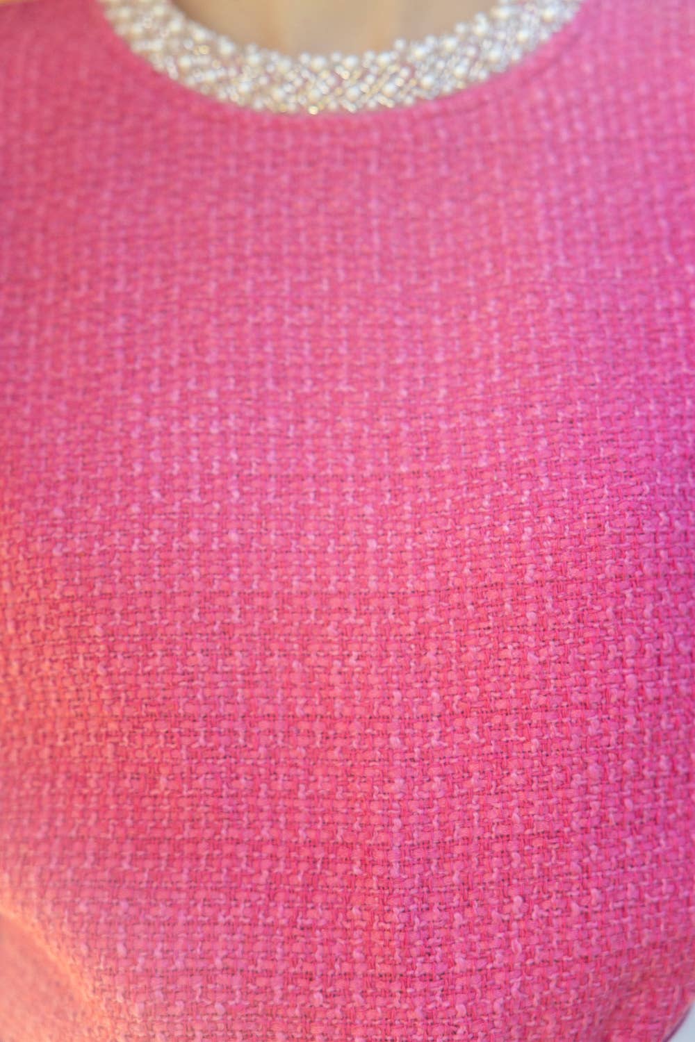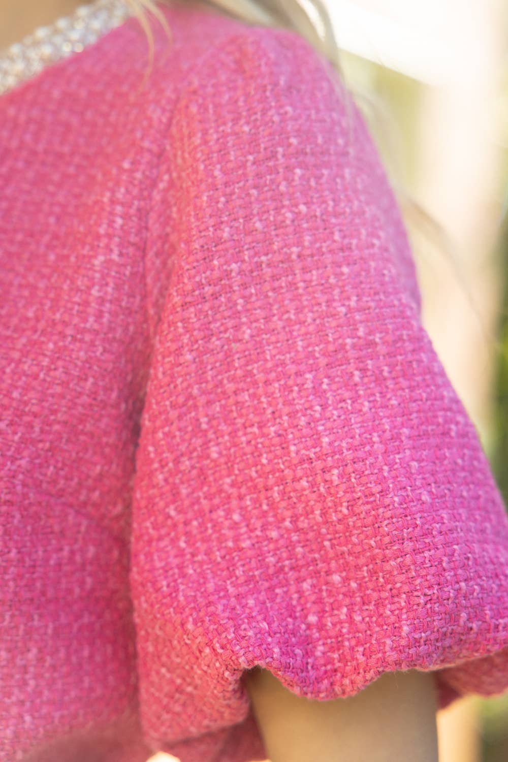 Pearl Trim Neck Bubble Sleeve Tweed