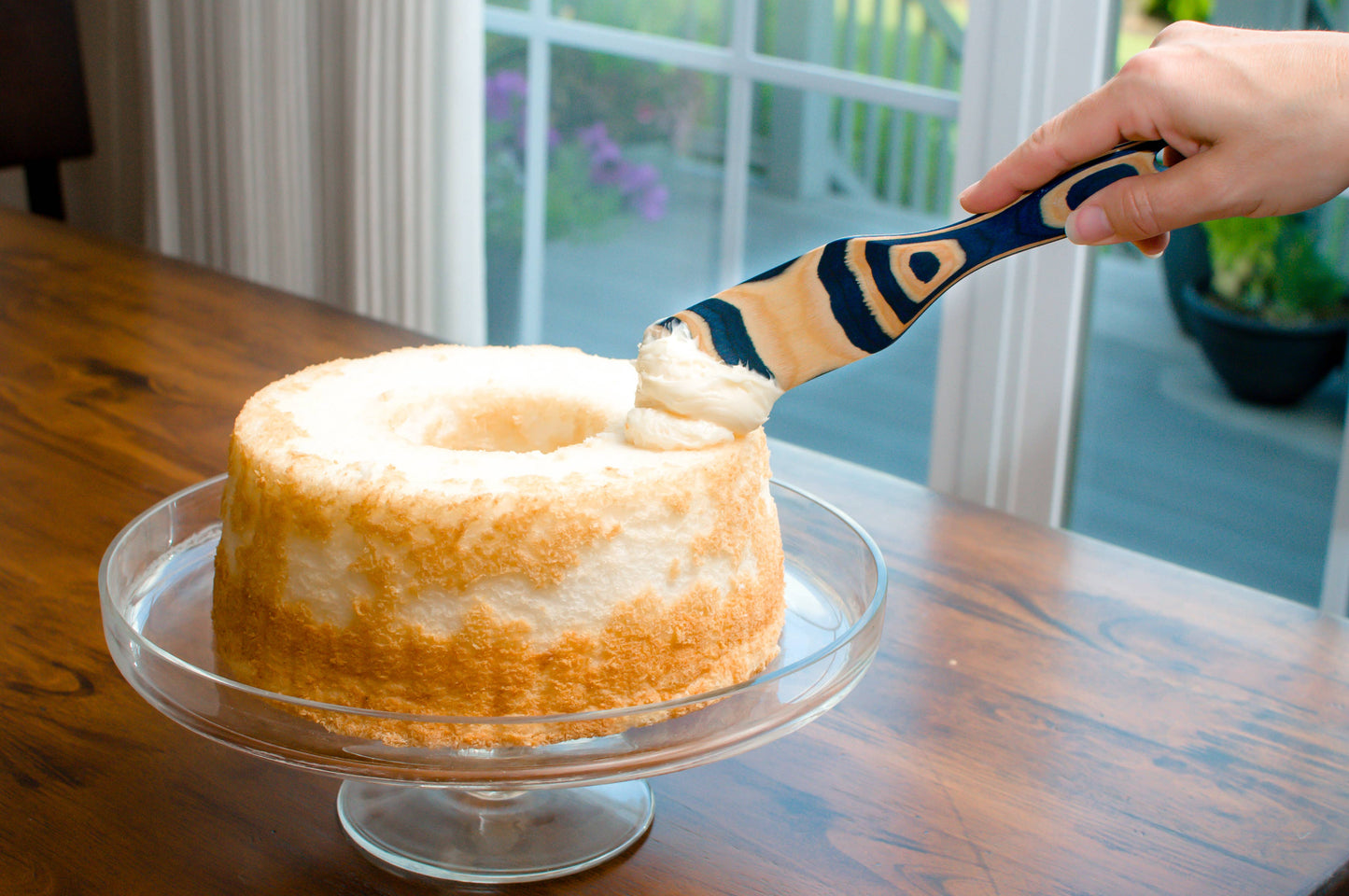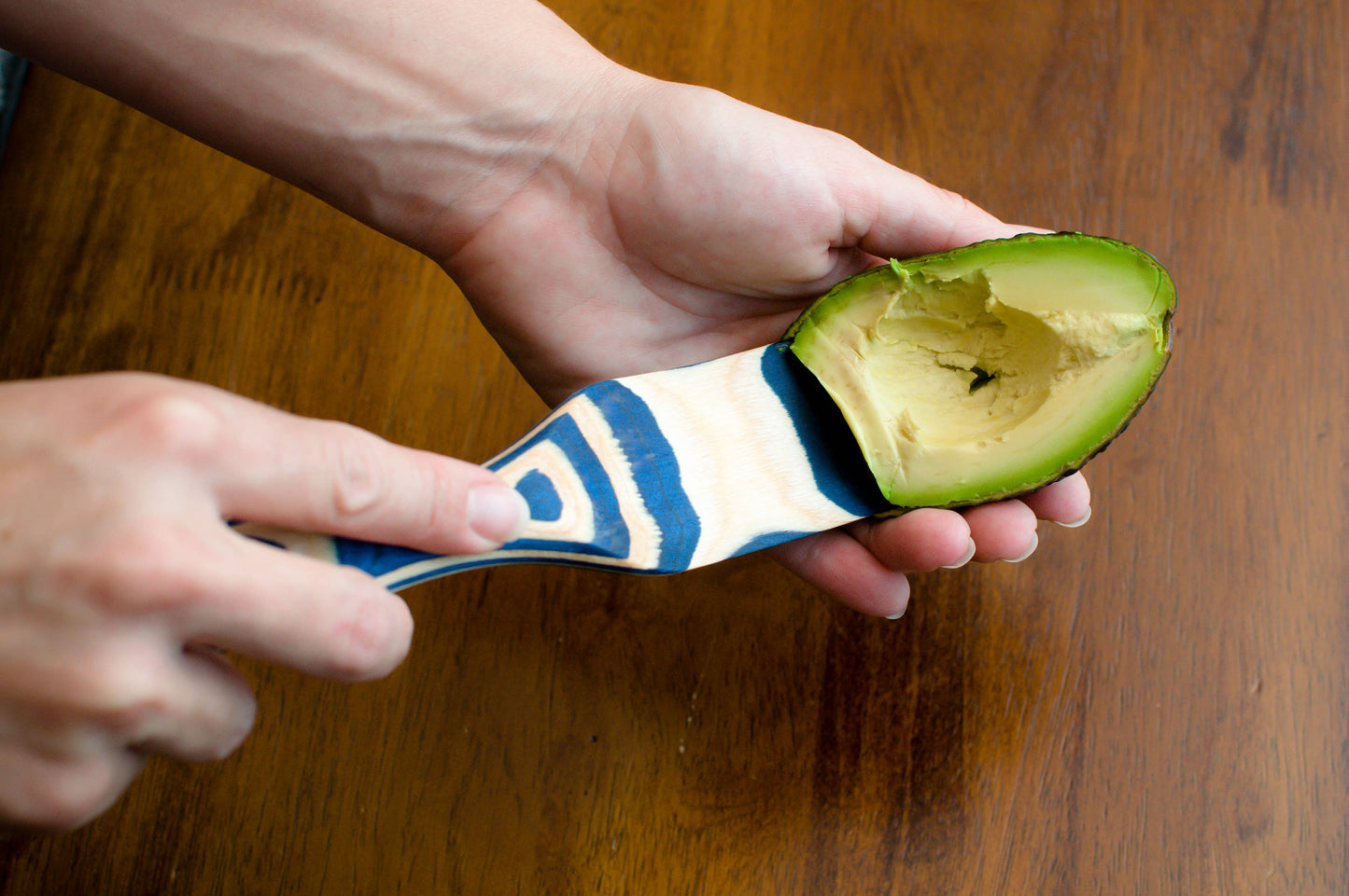 Layers of food safe, colored material make up these unique wood kitchen tools.
