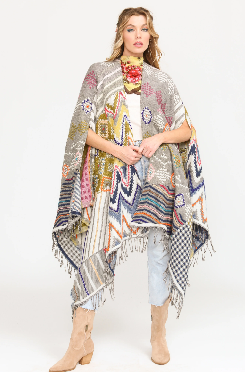Aratta Snow White Poncho Hand Stitched Jaquard