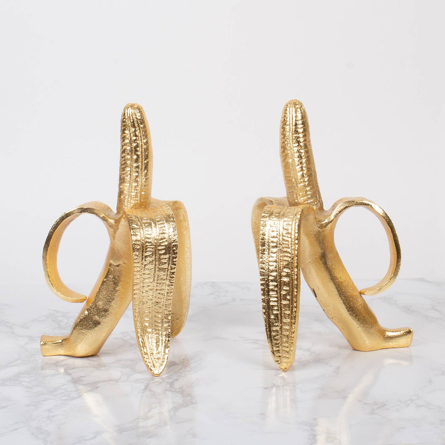 Transform your home into an elegant oasis with our stunning Banana Bookend Set. These exquisitely crafted bookends elegantly combine style and functionality, ensuring that each and every shelf in your home is supported with an exquisite touch. Our bookends feature a beautiful metal construction and a chic gold finish, guaranteed to sparkle in any space. Perfect for adding class to traditional bookshelves or even as a decorative accent around your living room - these luxurious pieces can be used anywhere in your home. Each set comes with two metal bookends, making it the perfect addition for any stylish household looking to make a lasting impression. Don't let your shelves settle for average when you can elevate them with our unique banana design!