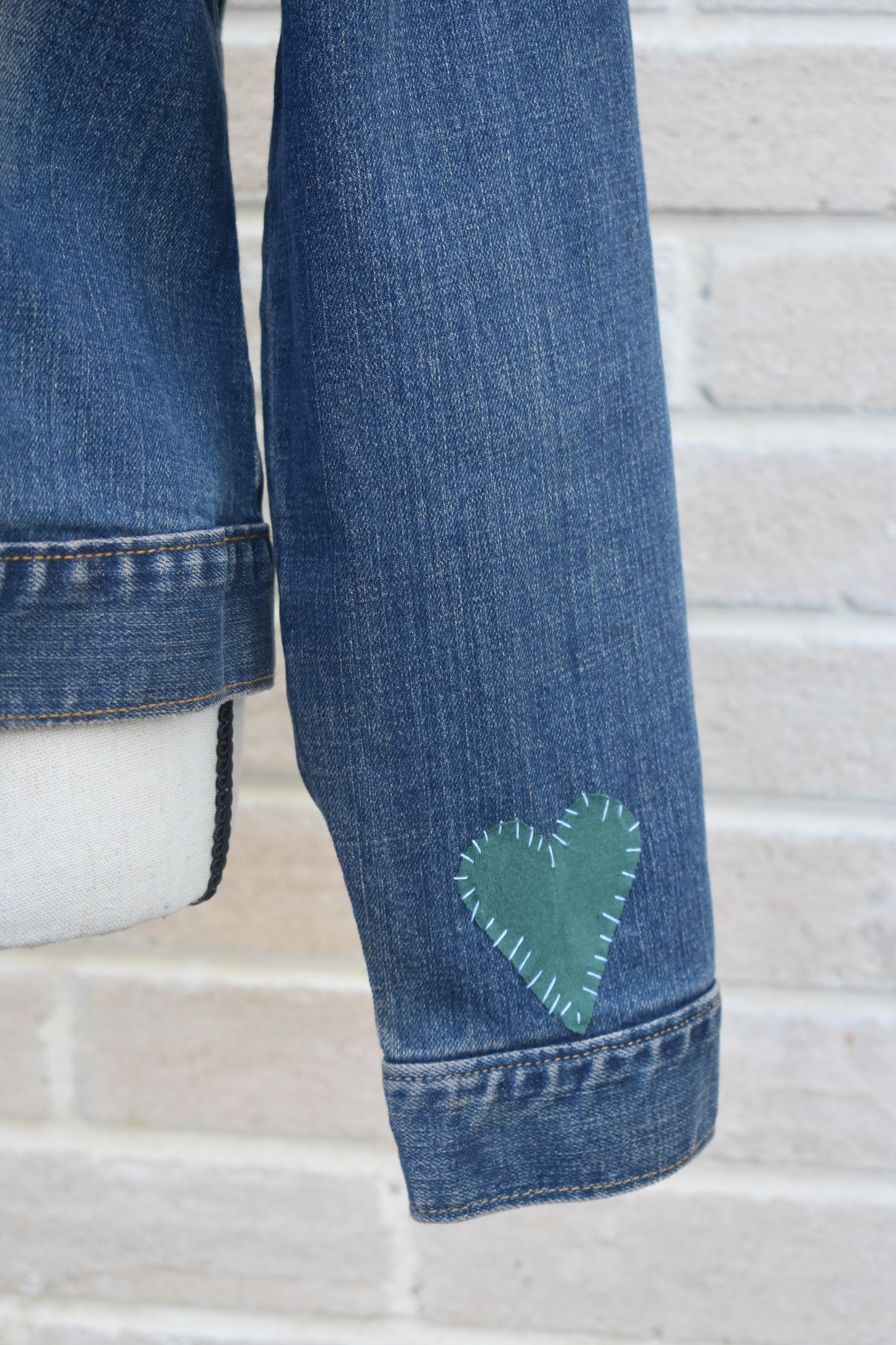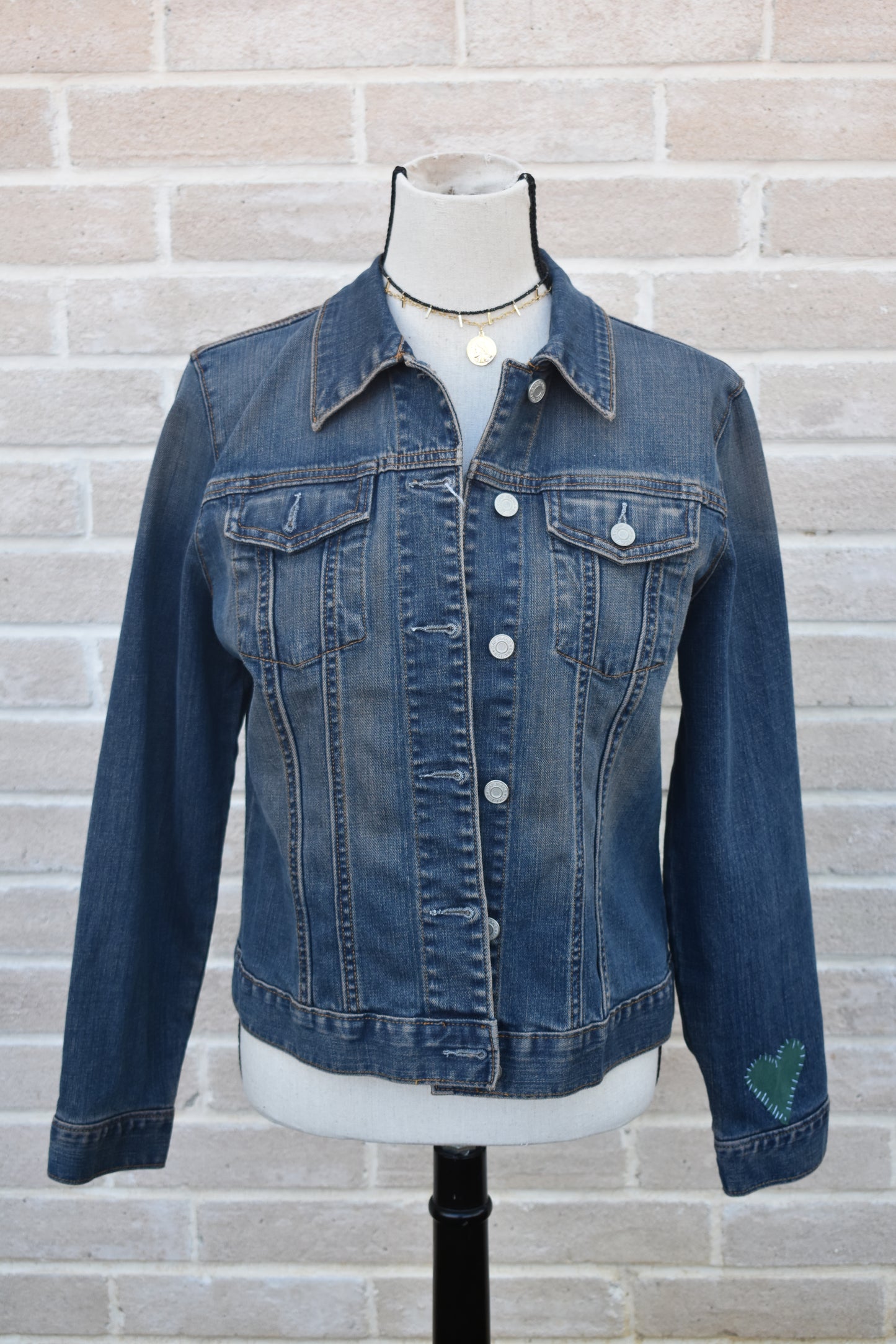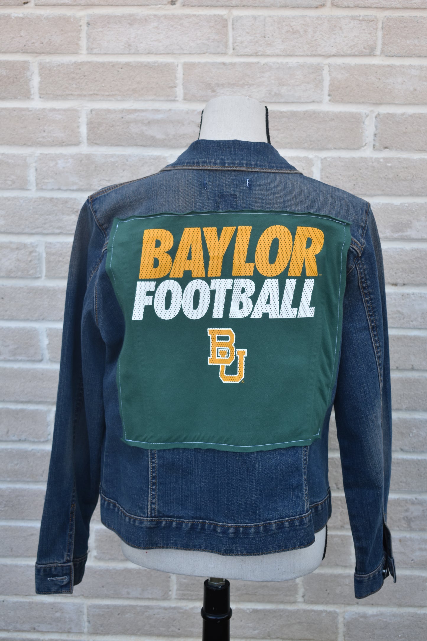 Baylor Football Repurposed Vintage Jean Jacket with a Hand-Stitched heart on the sleeve. Sic 'Em Bears! This jacket fits like a M-L.