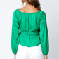 Our Beverly Satin Wrap Top features a front wrap and a side tie Woven