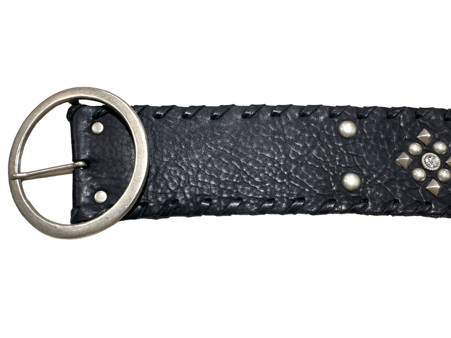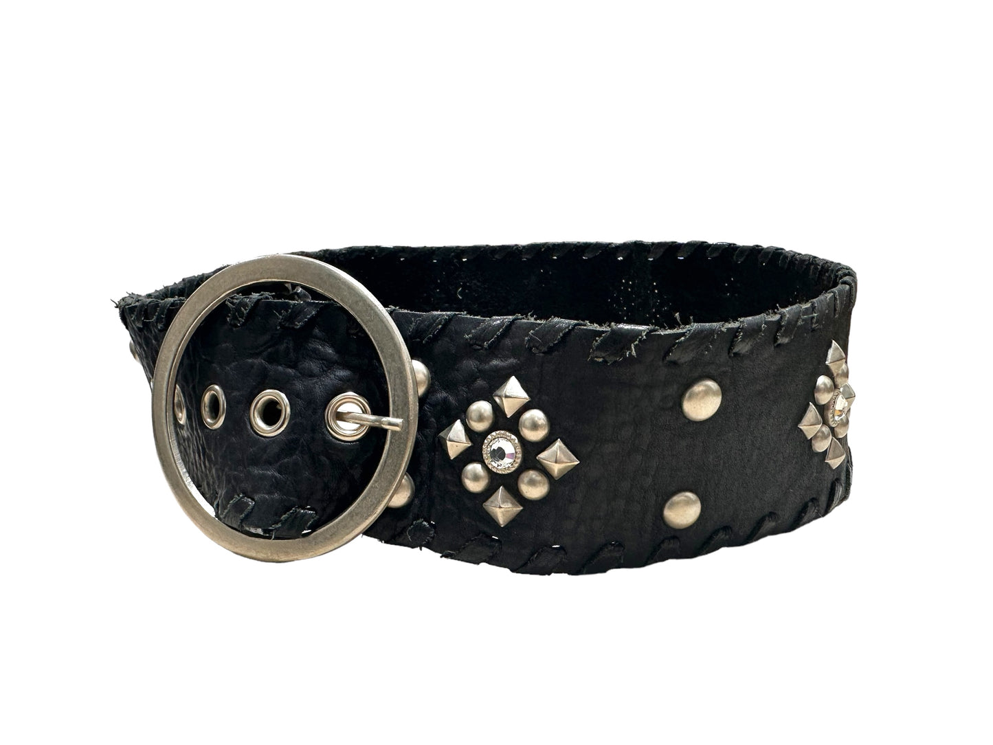Black leather belt w grommets and Crystals