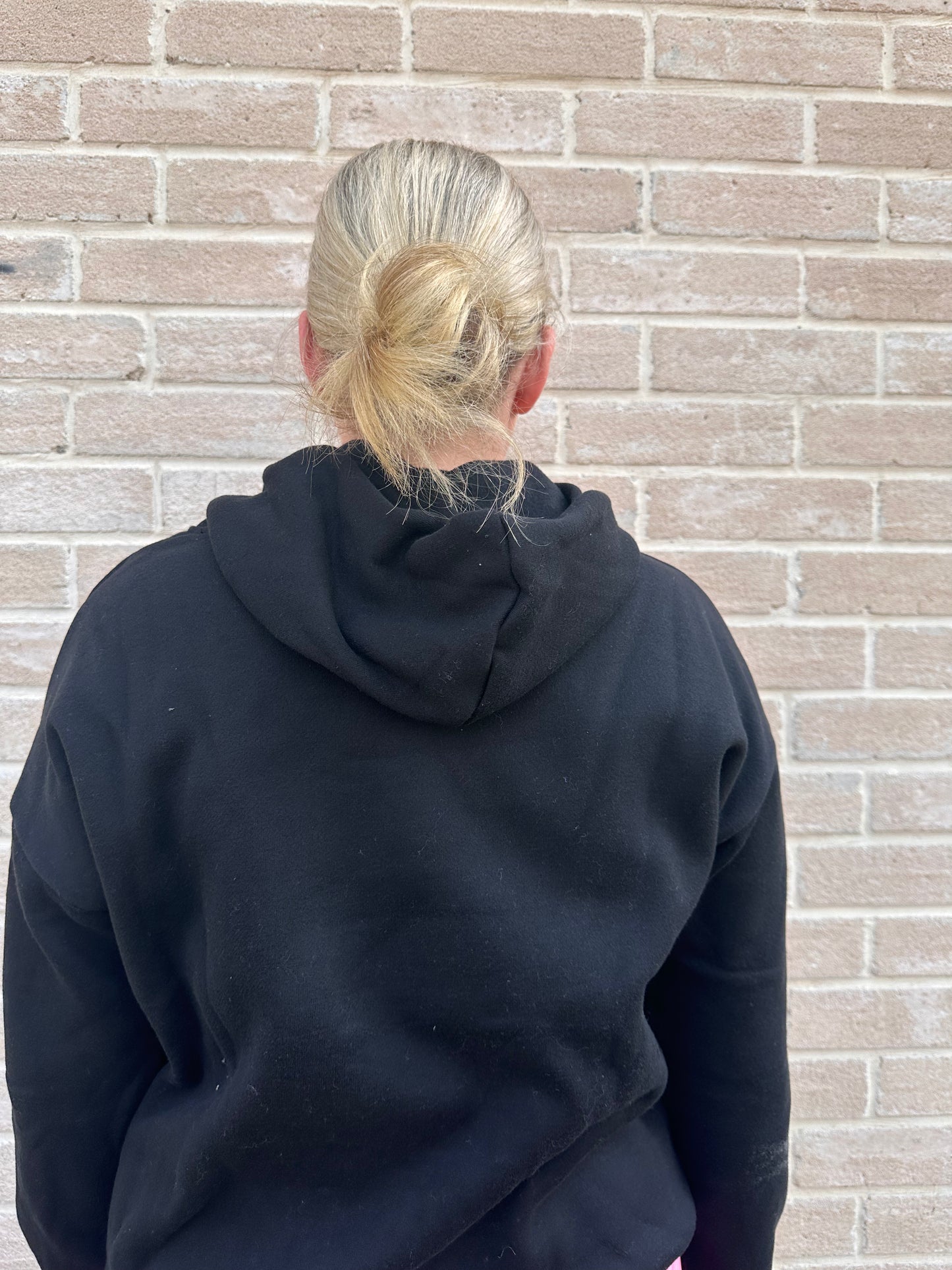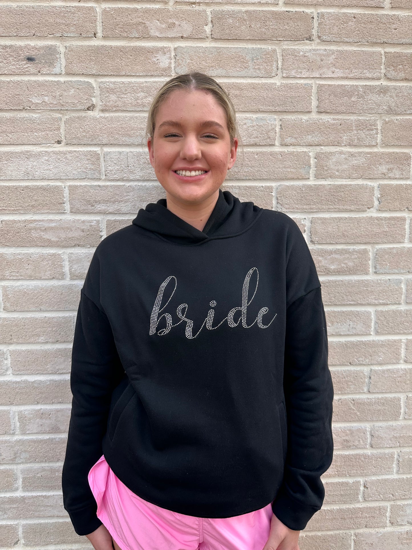Fun hoodie for the bride! 70% polyester 30% cotton.