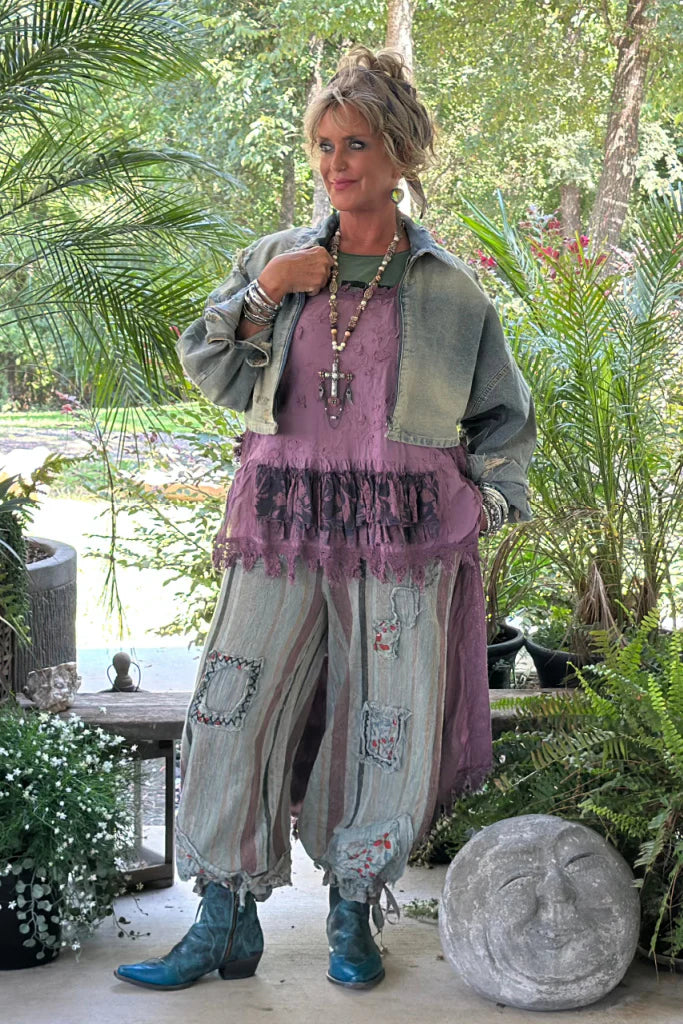 Patched and distressed trousers in fabulous colors. Dress up or down!