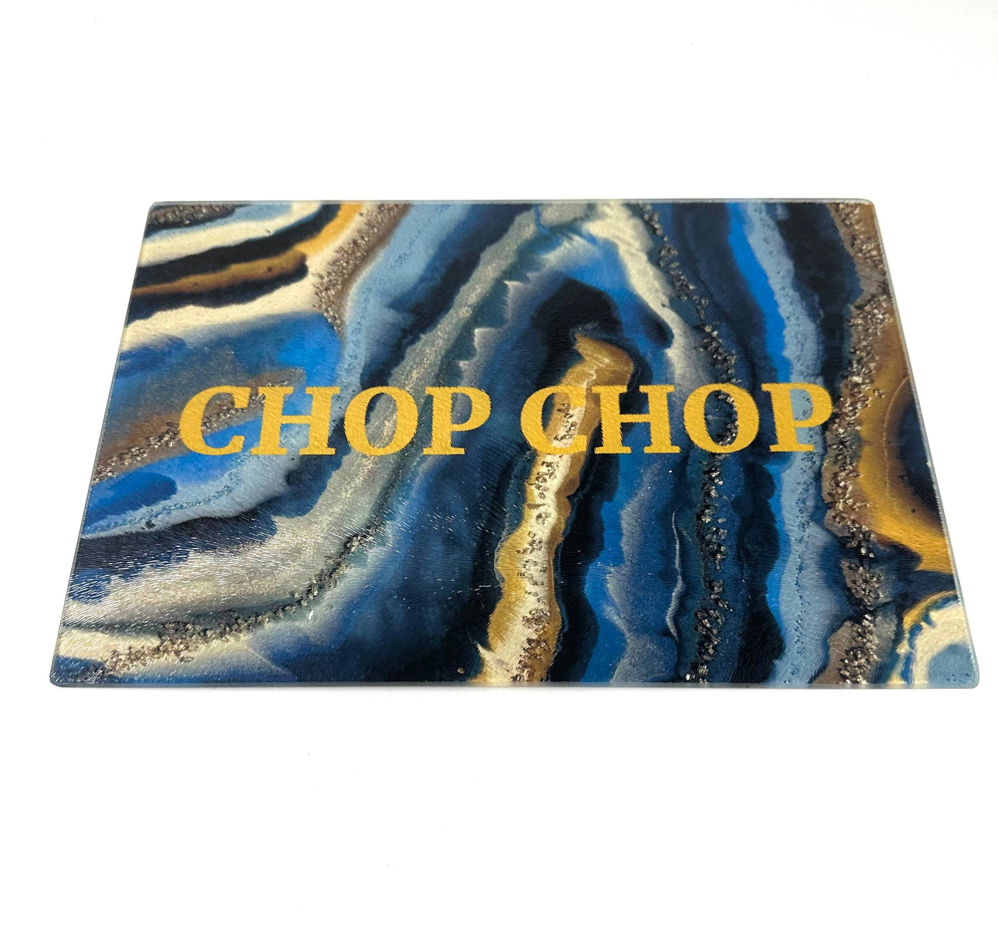 Experience the fusion of functionality and art with our Chop Chop Blue Agate Glass Cutting Board from Resinate By KS. This 8x11 inch board is not just a cutting surface, but also a charcuterie board, adding a touch of elegance to your kitchen. Artist Kristin Smith's passion for unique quality creations is evident in the board's vibrant design. Enjoy the blend of practicality and artistry in your kitchen with Resinate By KS.