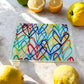 Experience the fusion of art and function with our Colorful Graffiti Hearts Cutting Board This 8x11 glass cutting board doubles as a vibrant charcuterie board, bringing a pop of color to your kitchen. Crafted with love in New York by our passionate artist Kristin Smith, this piece not only simplifies your meal prep but also adds a unique aesthetic to your kitchen decor. It's more than just a cutting board; it's a statement of style and quality. Enjoy the blend of practicality and artistic flair in your daily cooking routine.