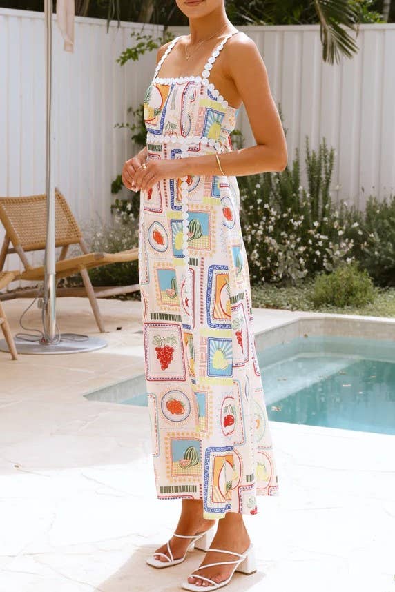 CONTRAST TRIM FRUIT UNIQUE PRINT SLIP MAXI DRESS_RCJW04732