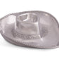 A ropy pattern borders the edge of this morphed hat, while the brim has a pronounced bend that holds the chips in place. A detailed band wraps around the hat's hollowed crown and features a stylish ribbon. Handcrafted in cast aluminum, this piece shines when paired with colorful guacamoles and salsas. Carve out a place on the table for this best-selling Cowboy Chip and Dip from Arthur Court. Size: L: 15.5" / W: 13.0" / H: 4.0" Care: Wash by hand with mild dish soap and dry immediately - do not put in dishwasher.