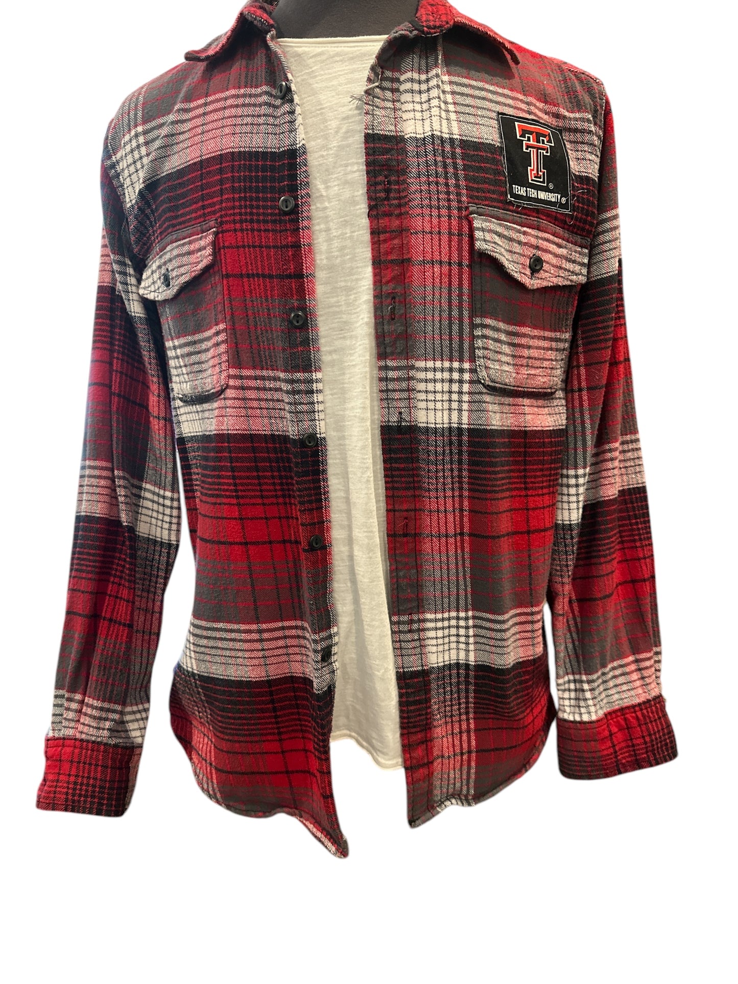 Vintage Repurposed Guns Up Texas Tech Flannel! Fits like a L-XL. Measuring 20" across the chest.