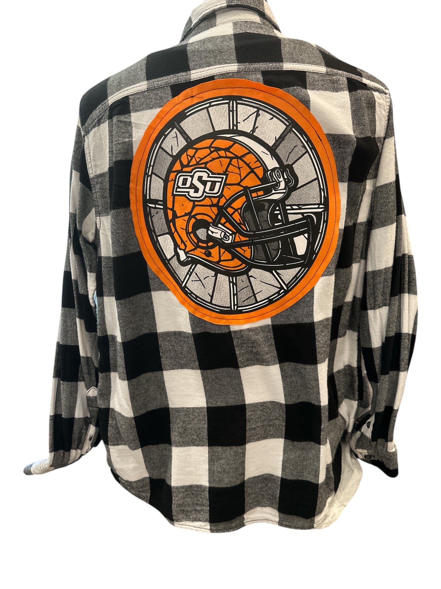 Vintage Repurposed OSU Flannel! Fits like a L-XL. Measuring 20" across the chest.